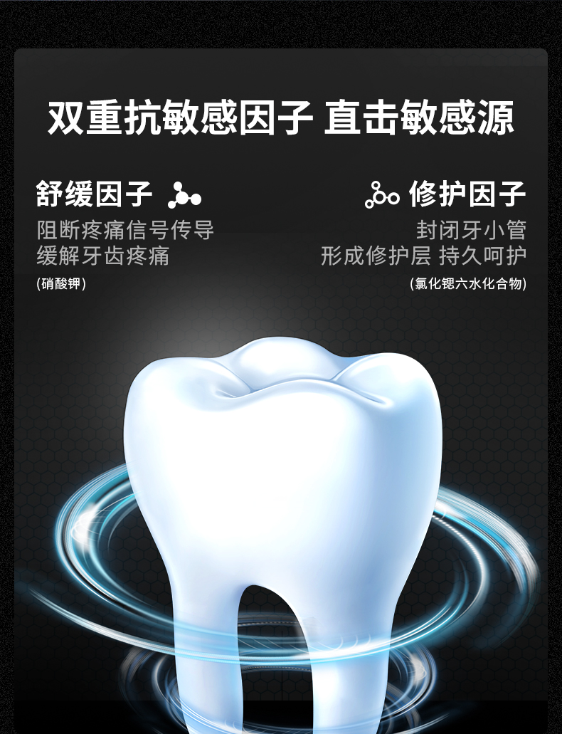 冷酸灵菌衡护敏牙膏:清爽薄荷香、莹白膏体。含抗敏感活性因子,缓解牙齿敏感疼痛;特含SDC健齿素,能持续抵抗牙菌斑;弱碱性膏体,维护口腔酸碱度平衡。