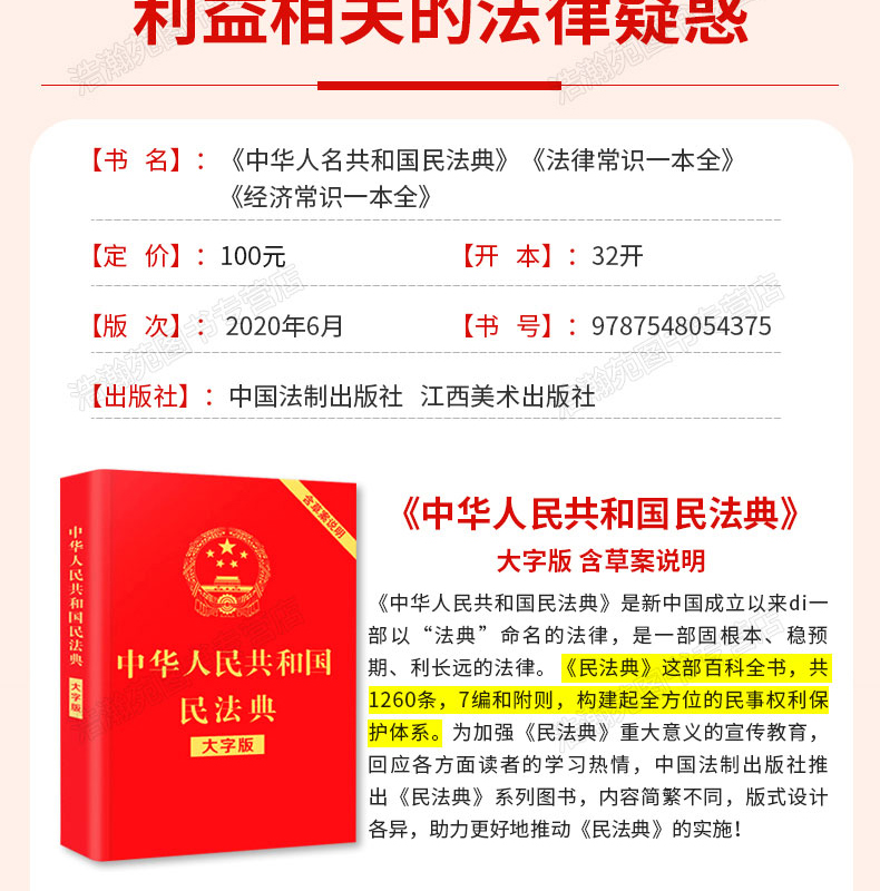 天猫浩瀚苑图书专营店,1月24日~2月8日 春节不打烊,¥29.8元 促销价,-10元优惠券,=19.8元 到手价,2020年后婚姻法、继承法、合同法等9部法律作废了,这款民法典在2021年1月1日正式生效,从出生到退休养老都有用处,中国法制出版社出版,包括中华人民共和国民法典年大字版+法律常识+经济常识一本全。