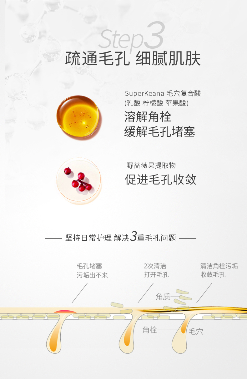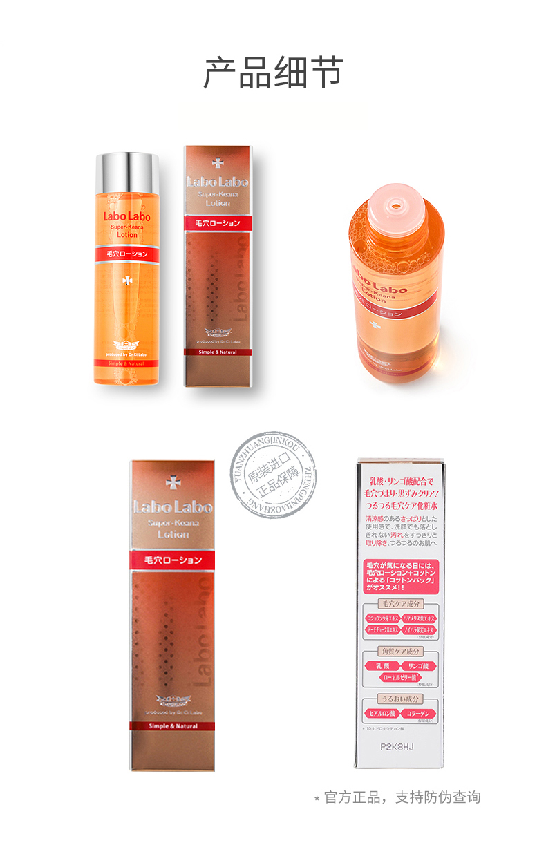 无香料、无着色,独自天然乳酸成分,能清除毛孔内黑白头及老化角质;天然瑰果,紧致肌肤;海洋性胶原蛋白、玻尿酸成分,深层渗透、肌肤内侧补水保湿;还含有天然橙皮油,散发着清新自然的橘子香,芦荟精华(保湿舒缓),犬蔷薇(营养修护),迅速收紧张开的毛孔。
