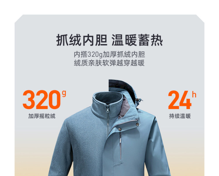 运动户外三合一冲锋衣加厚款,虾壳仿生冲锋衣,一件顶八件,全天候防护,无惧风雨,太空聚热科技,好品质,懂的都懂