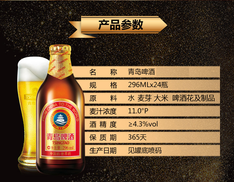 青岛啤酒金质小棕金,是由青岛啤酒股份有限公司生产的,以优质麦芽、大米、啤酒花为原料酿制而成,麦香浓郁酒味醇厚,麦芽度数一般是11度,深受消费者喜爱。是消费者与朋友狂欢、聚餐十分不错的选择。规格:296ml*24瓶。