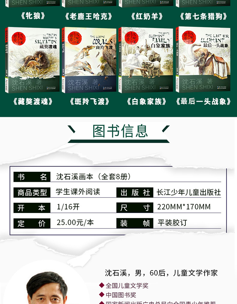 天猫格典图书专营店69.8元,可领10元优惠券,实付59.8元到手,全套8册,著名儿童文学作家沈石溪出品。