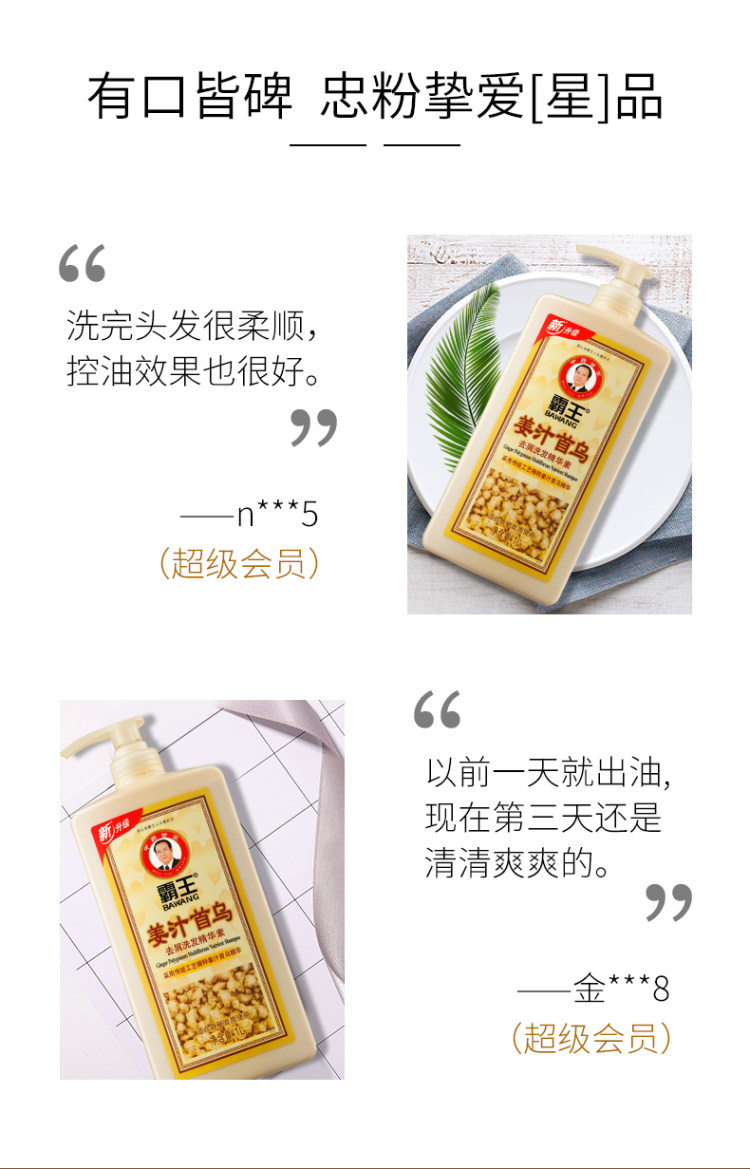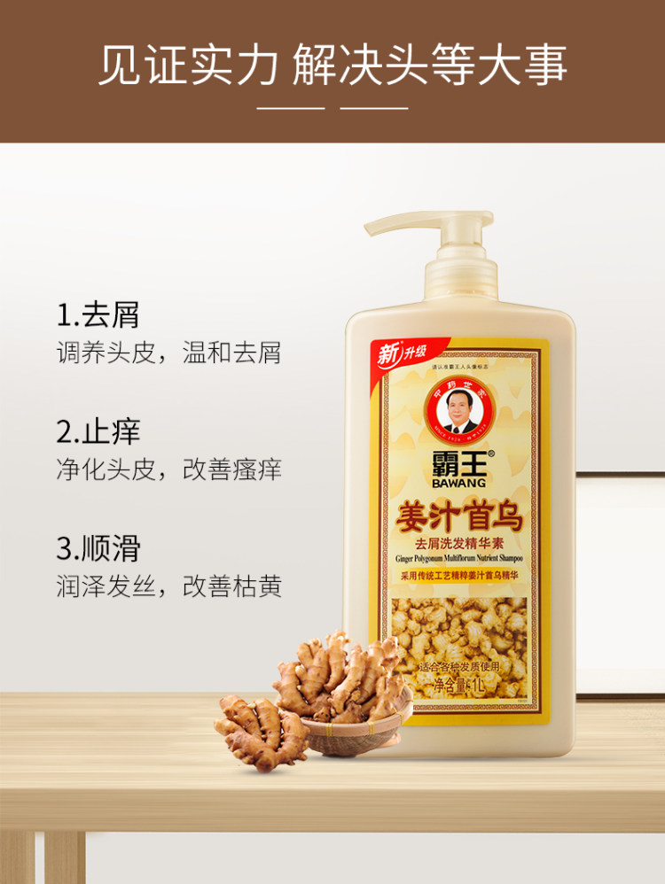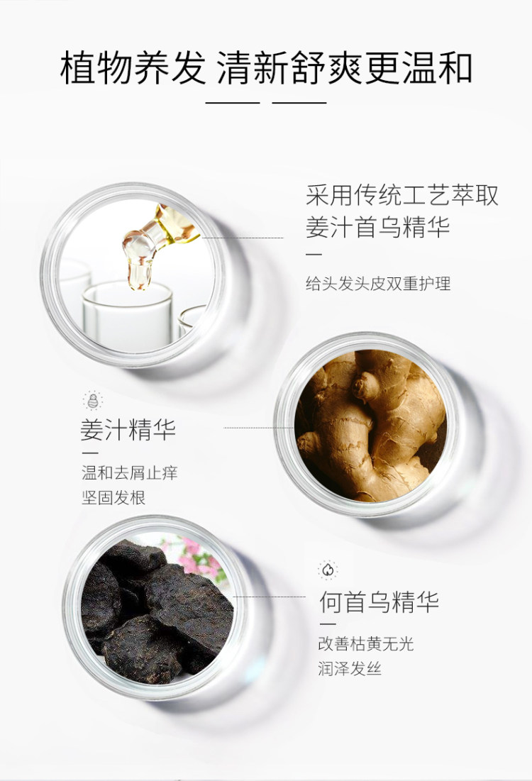 添加姜汁首乌,温和去屑止痒,净化头皮,清爽控油,预防脱发,滋养护发,调理头皮,温和不刺激,黑发密发,强根固发,霸王给你自信领券链接点此