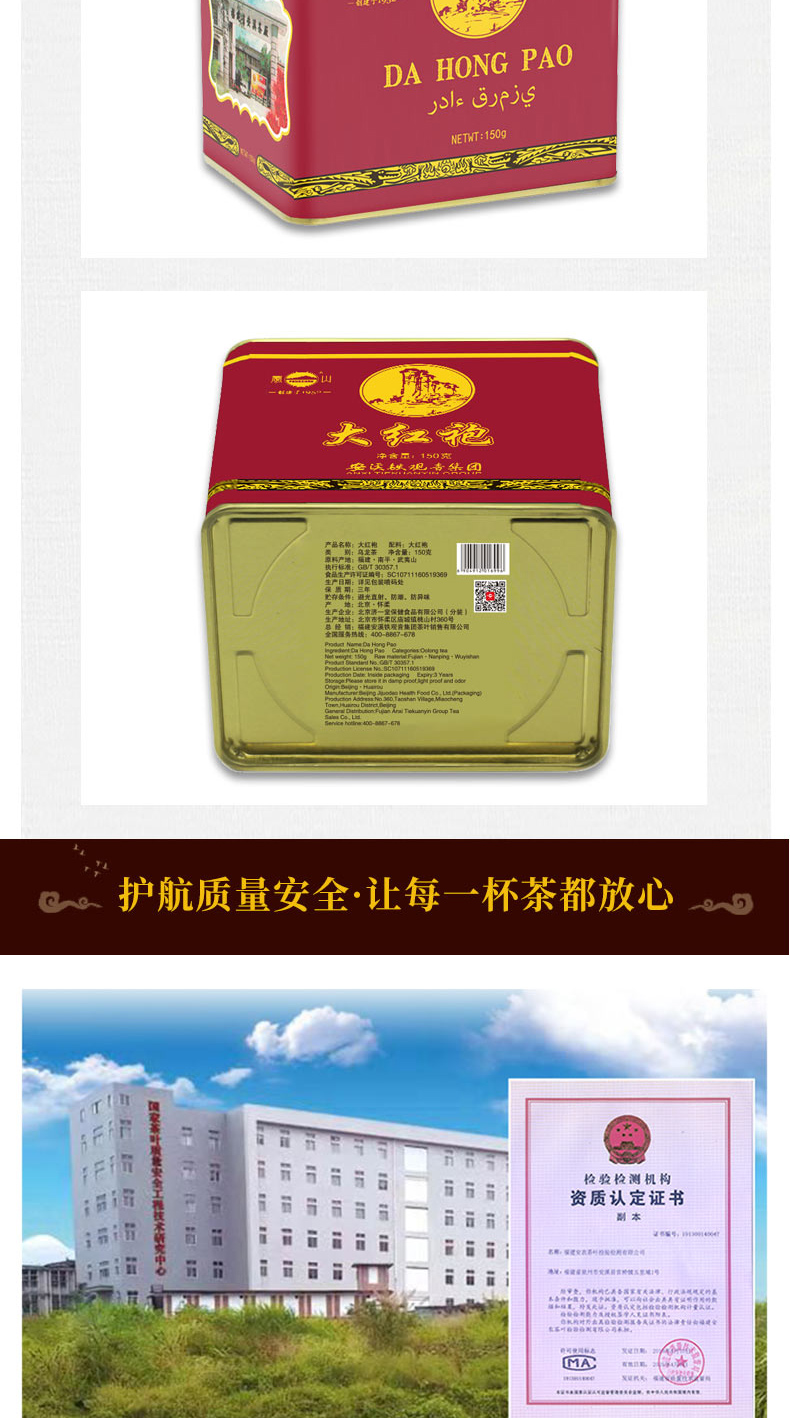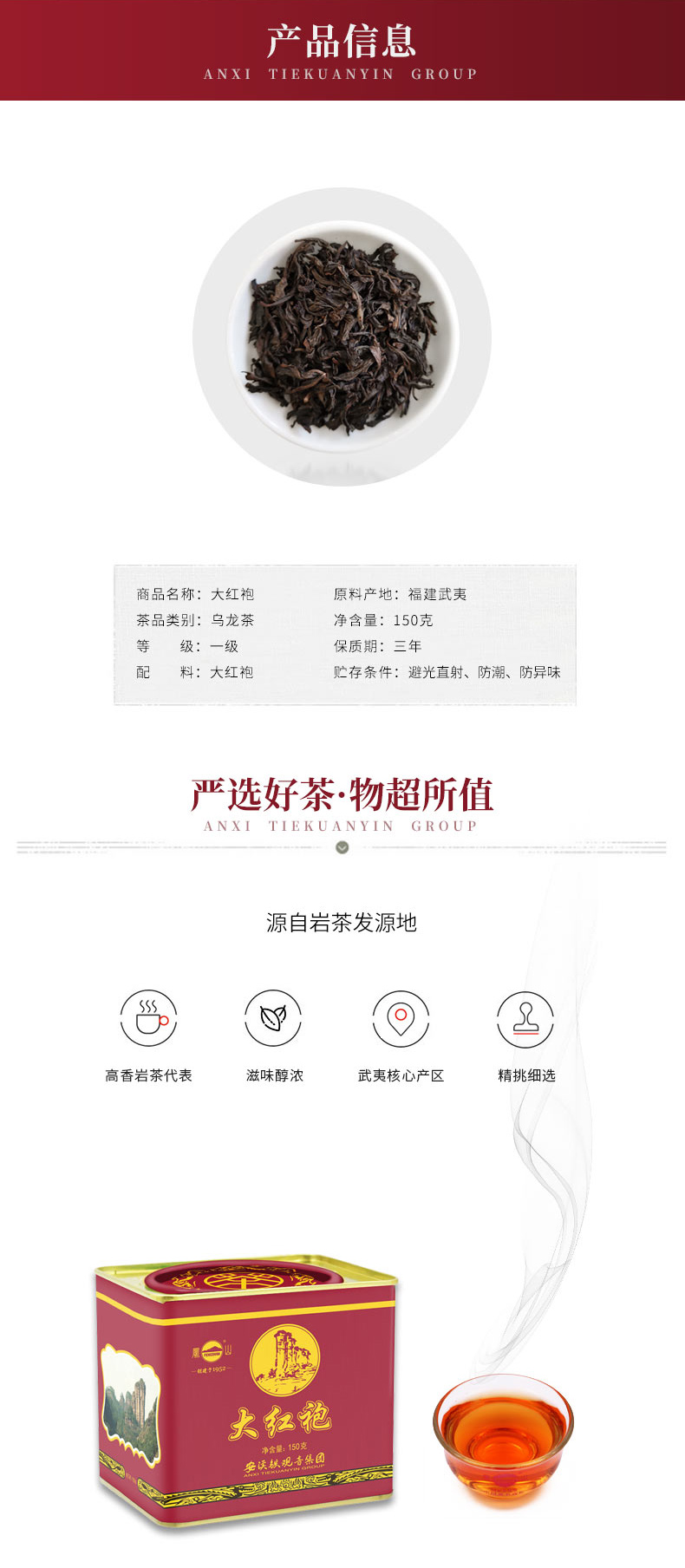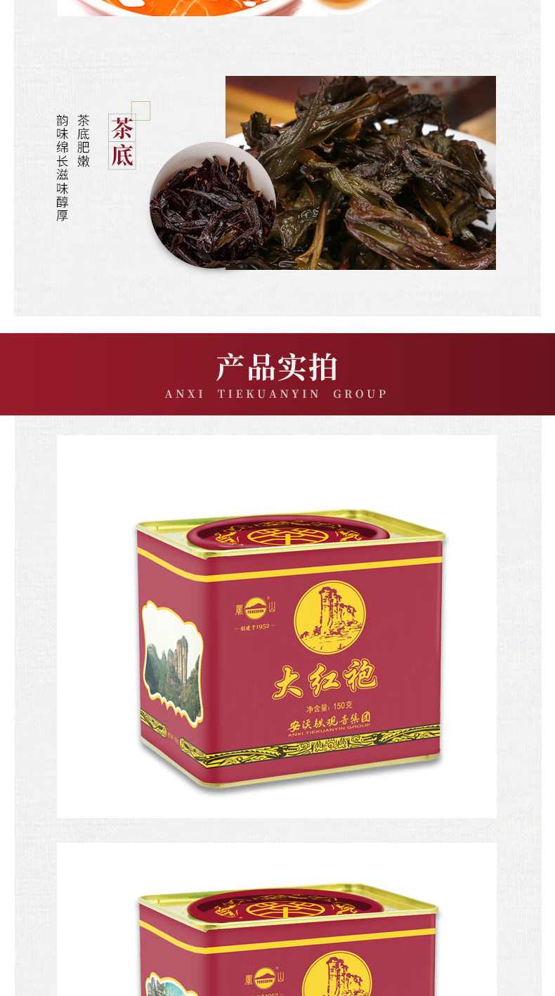凤山武夷大红袍浓香型茶叶160g罐装,正宗武夷岩茶,高山岩茶代表,源自武夷核心产区,岩茶发源地,传统工艺制作,干茶肥硕,色泽油润带宝色;汤色橙黄,香气浓郁且润,茶底肥嫩,韵味绵长滋味醇厚。