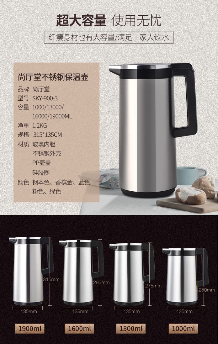 天猫supkit尚厅堂旗舰店69元,可领20元优惠券,实付49元到手,还有1.9L款可选。这款尚厅堂保温壶 外壳是奥氏体304不锈钢,安全无毒,内里是玻璃内胆,外层镀银,双层真空密封,强悍保温。