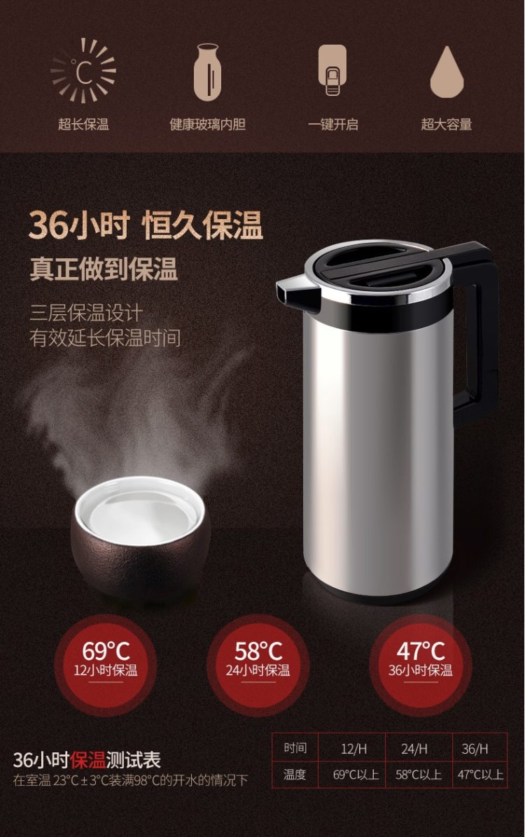 保温:8小时87℃以上、12小时77℃以上、24小时64℃以上、36小时55℃以上;
