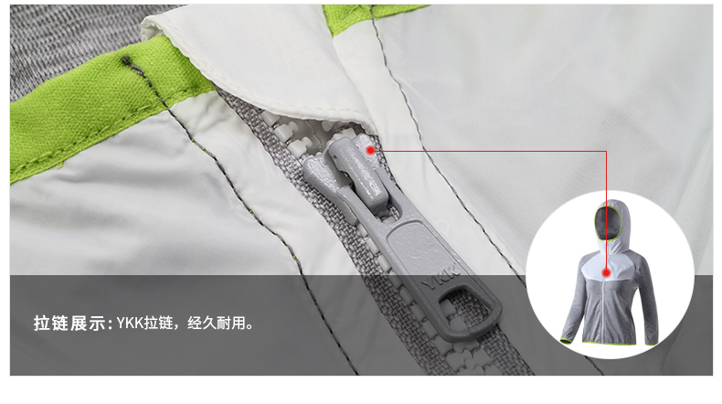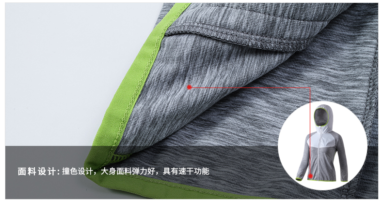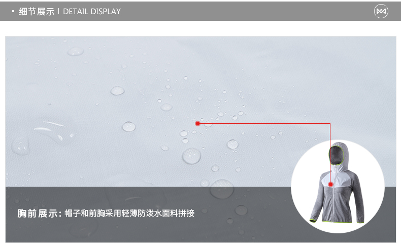 在细节方面,肩部采用双线缝合,在领口位置还使用了耳机线孔设计,方便运动时听歌。门襟拉链顶端有护颚设计,避免拉链拉太快导致夹到脖子肉。