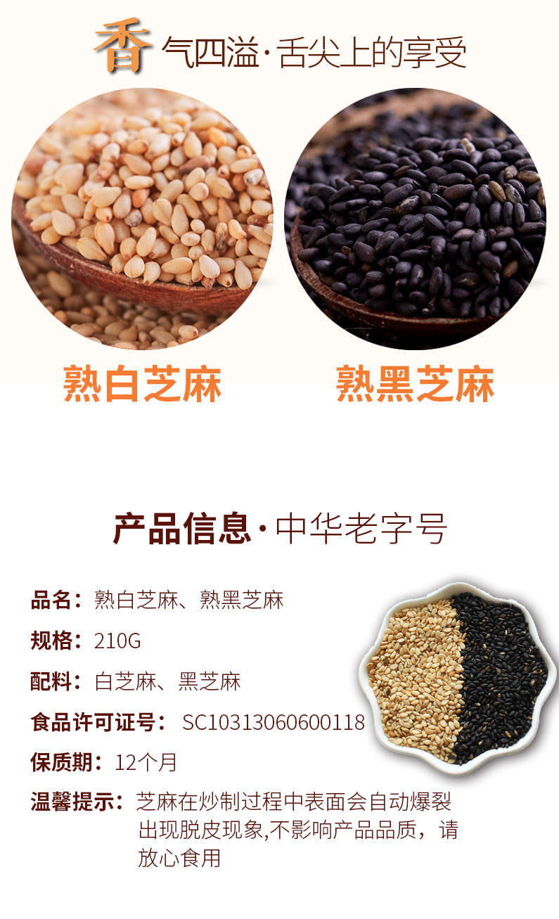 天猫六必居旗舰店24.9元,可领5元优惠券,实付19.9元到手,规格为210g*2罐,黑白各1罐,六必居纯有机芝麻,拌凉菜,涮肉必备!精选出口级芝麻,无添加剂,质地细腻丝滑香醇,吃火锅,涮肉,拌饭拌面。