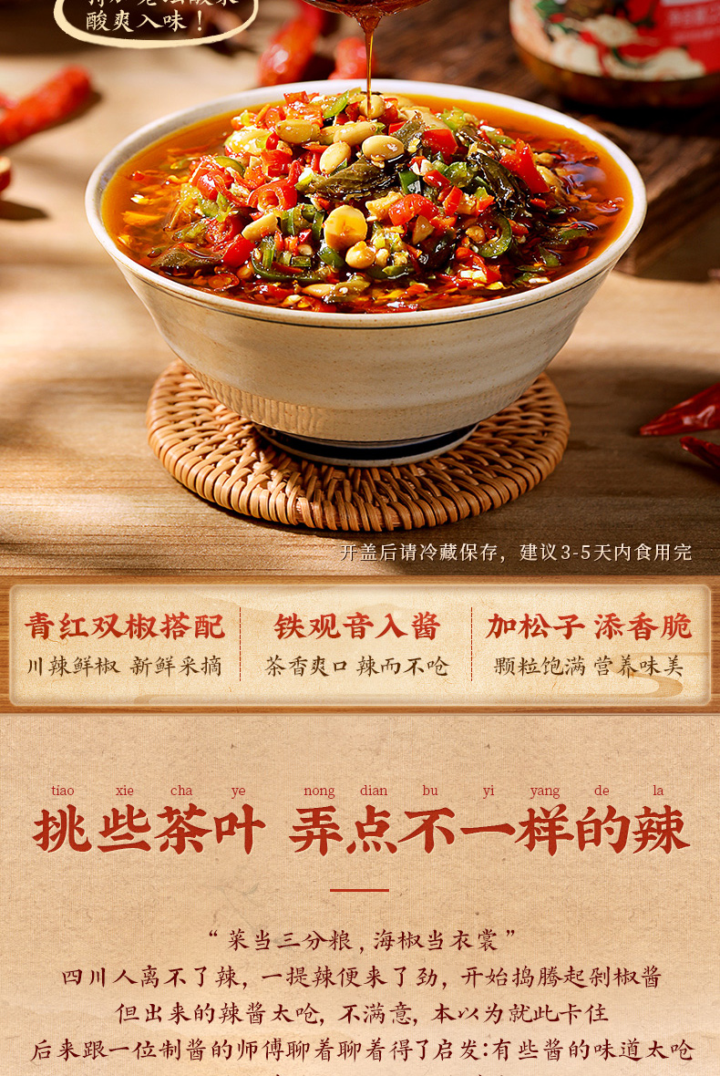 (注:款剁椒酱采用的是新鲜的红小米椒和青二荆条辣椒,辣度较重,如果不太能吃辣,建议谨慎购买)