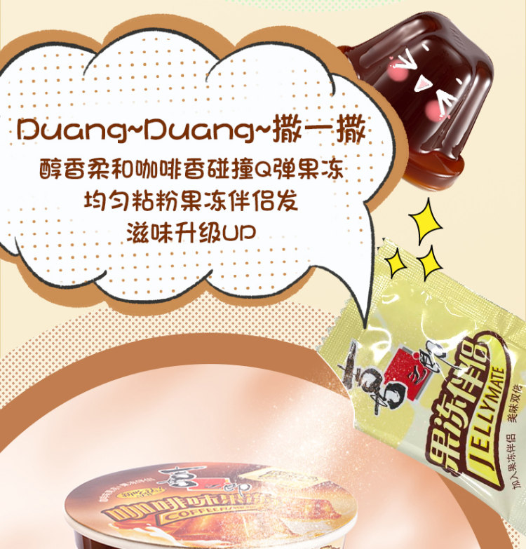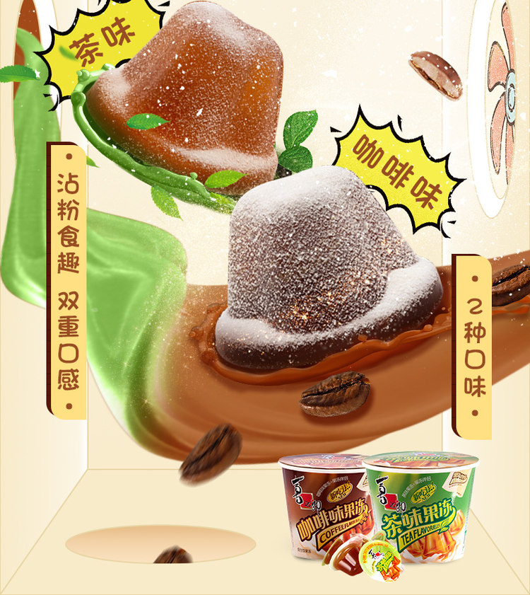 天猫喜之郎食品旗舰店9.9元,6件满减,可领30元优惠券,实付49.9元到手,是正价9.91元的10折;边摇边吃,摇滚起来,茶味/咖啡两种口味。超Q弹的果冻,撒上细腻的果冻伴侣粉,入口嫩滑