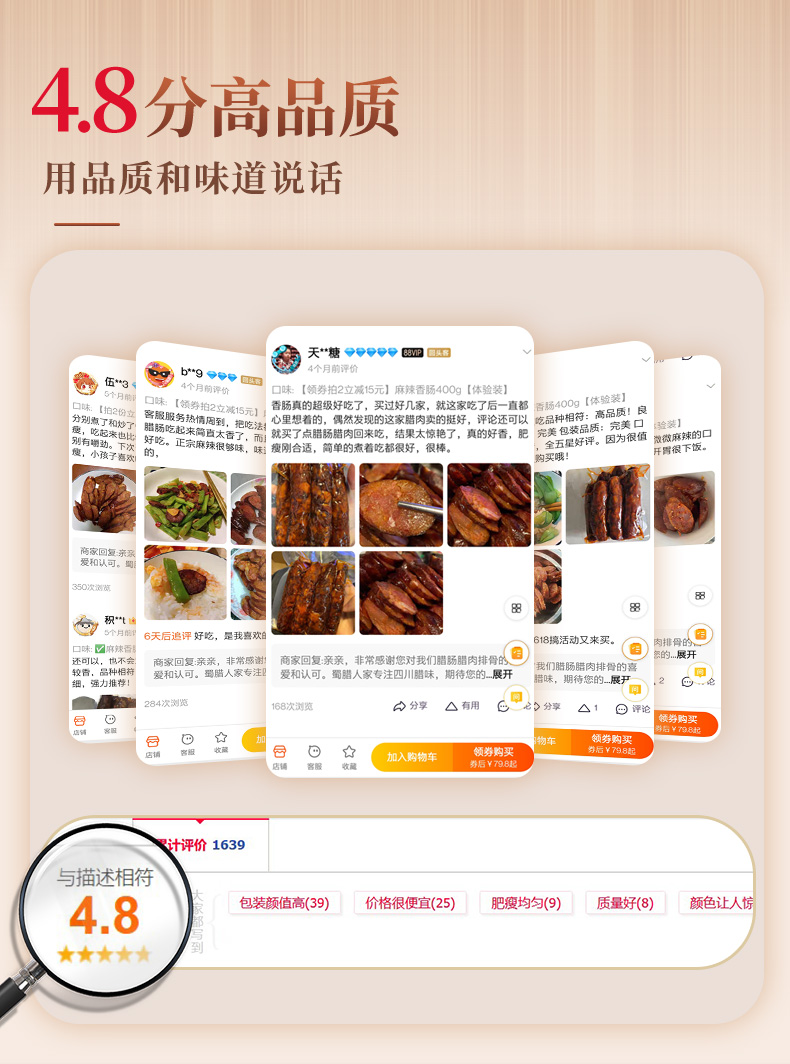 天猫蜀腊人家旗舰店49.8元,下单立减0.81元,可领19元优惠券,实付29.99元到手,蜀腊人家腊肠四川特产农家自制正宗烟熏腊肉,特色腊味川味麻辣香肠领券链接点此