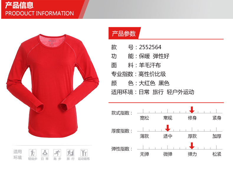 美利奴羊毛是最优的天然吸湿快干纤维,是天然恒温材料,秋冬可作为中间层保暖,炎热的夏季体表大量出汗后,使用超细美利奴羊毛,织成超薄轻盈透气的面料,能吸收大量水气并快速挥发,保持体表干爽舒适。美利奴羊毛还含角质蛋白,可以抑制细菌滋生,抑菌除臭,不会出现汗酸味。