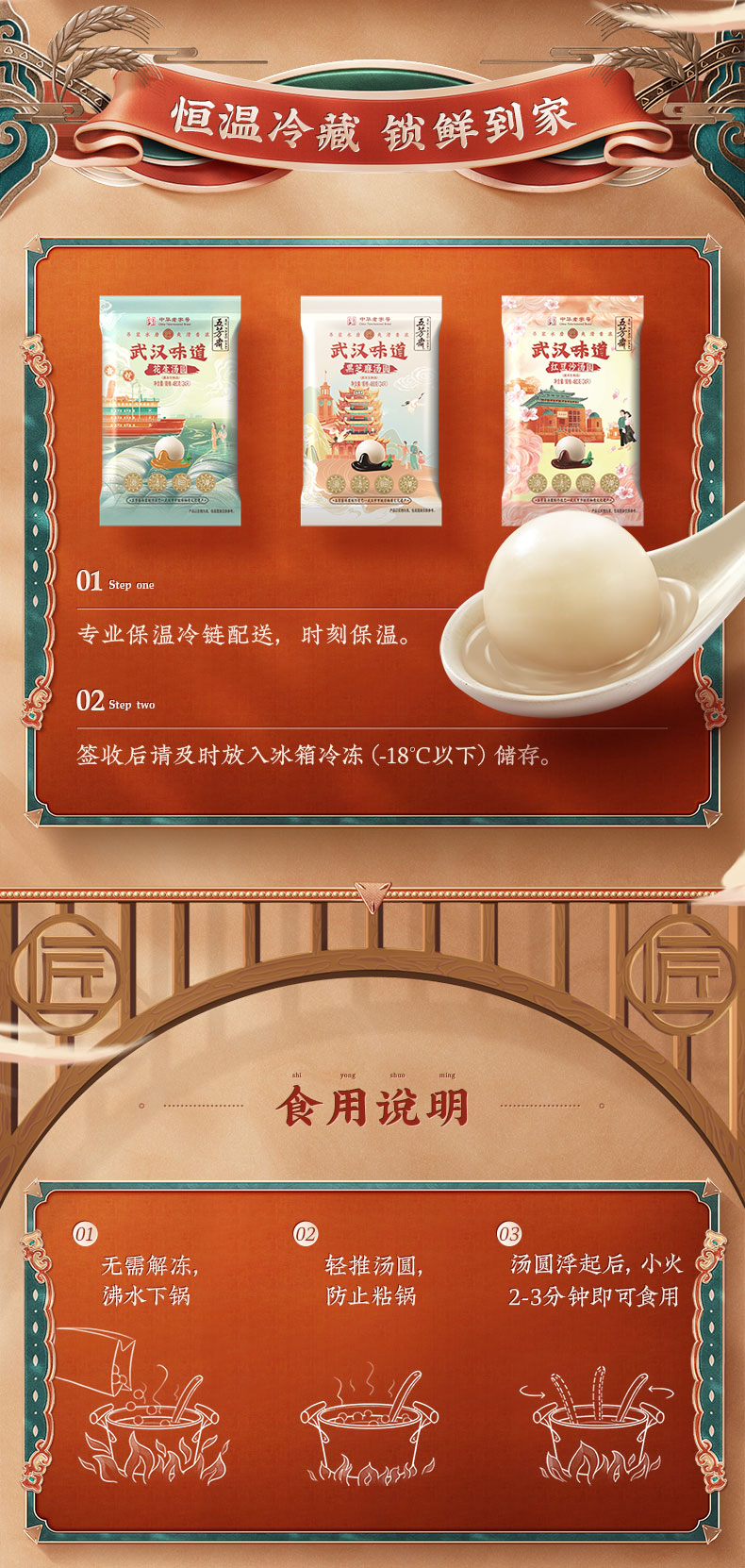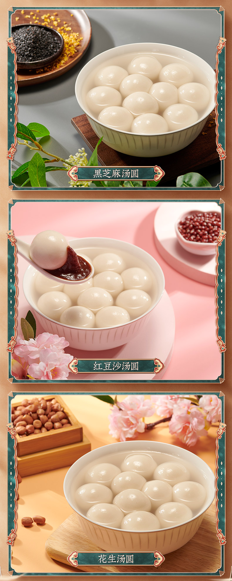 精选湖北应城糯米、河北黑芝麻、山东花生、山东红豆、湖北咸宁桂花为原料,吊浆水磨,非遗传承工艺,皮薄馅大,爆浆流心,入口软糯、爽滑弹牙。无需解冻,沸水下锅,汤圆浮起后小火2-3分钟即可食用。