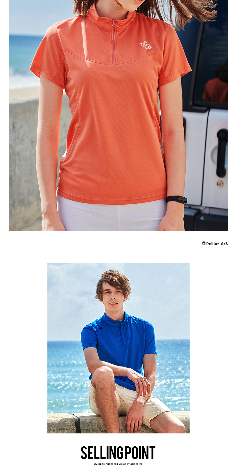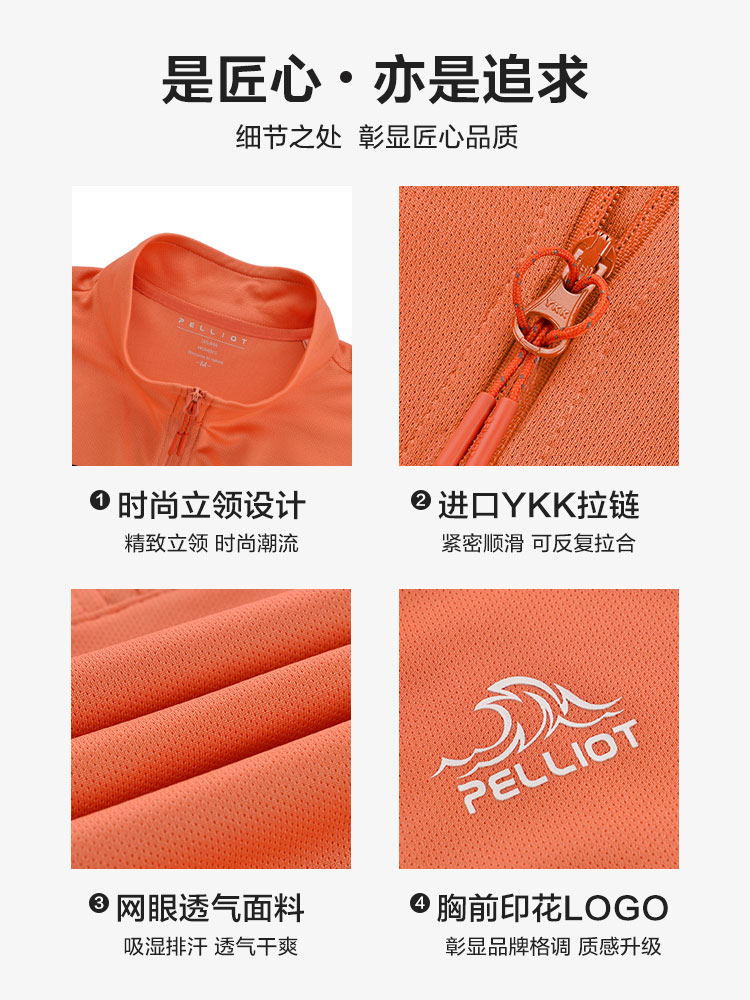 面料透气网眼结构,遍布细密小孔,有非常好的透气性,同时还有很好的弹力而且结实耐磨,户外穿着更舒适安全。3D合体版型裁剪,更适合亚洲人身材,精致小立领设计,拉链半开合,更具时尚性,拉链是进口Ykk的,紧密顺滑,提拉舒适,彰显品质。