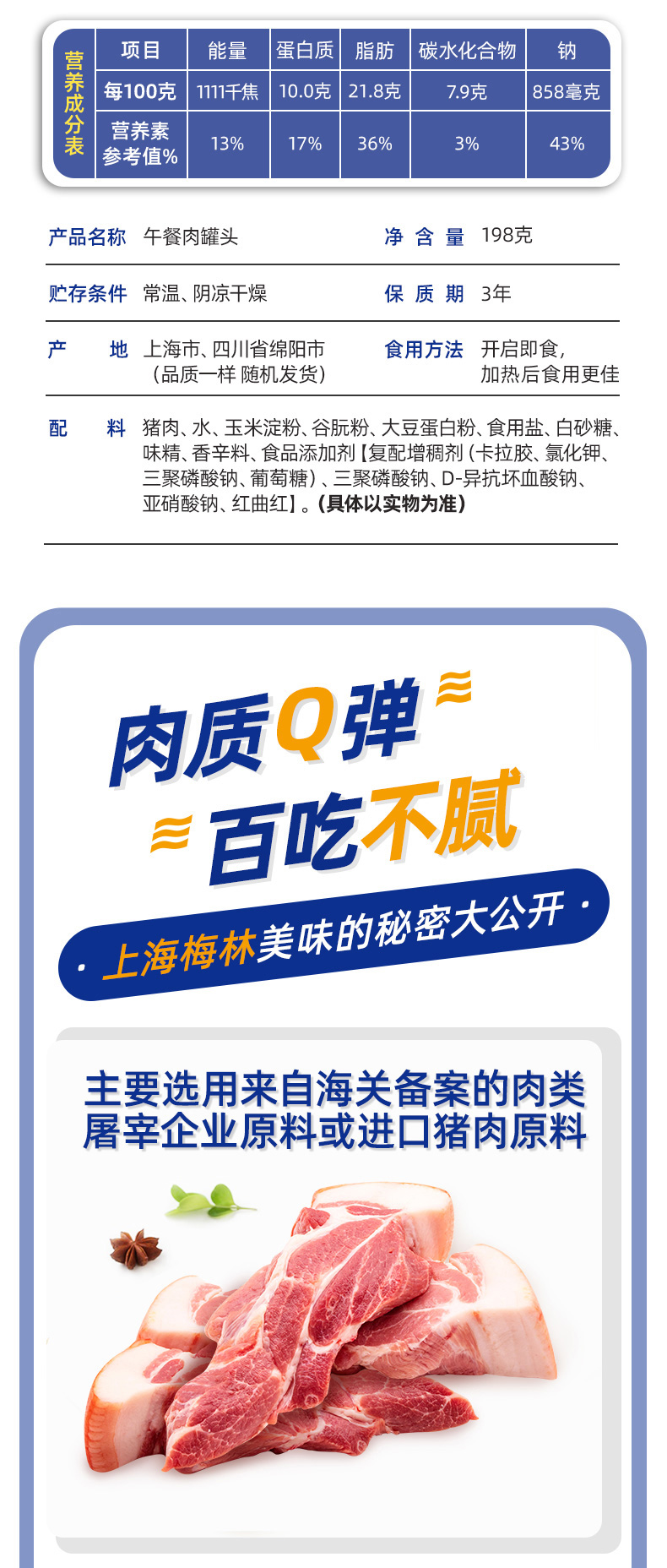 天猫maling梅林旗舰店38元,可领8元优惠券,实付30元到手,国民老品牌,上海梅林,不含鸡肉,咬一口肉粒十足,家中必备!精选猪肉,肉质Q弹,美味十足!无菌封罐,绝无防腐剂!涮火锅、元气早餐、配餐必选!