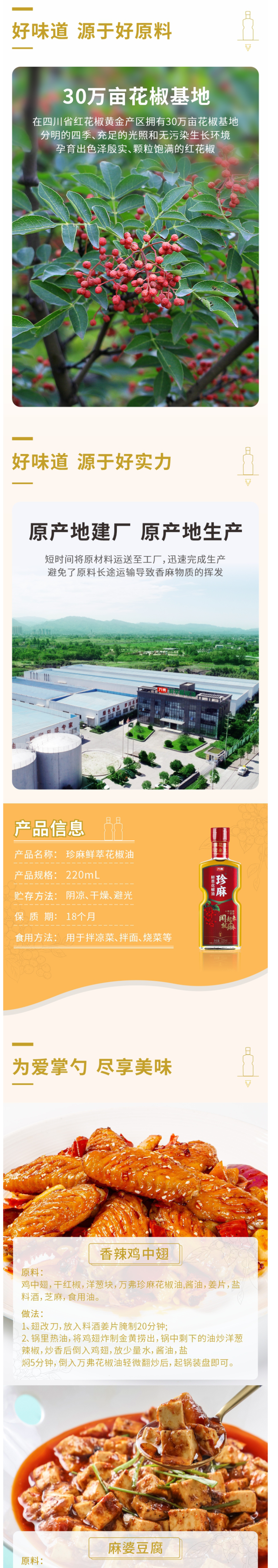 这款万弗花椒油,精选优质花椒制成,椒香浓郁,麻味纯正。可拿来凉拌、炒菜、做火锅蘸料等,提味又增香。