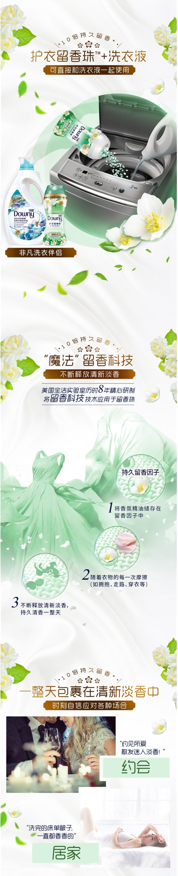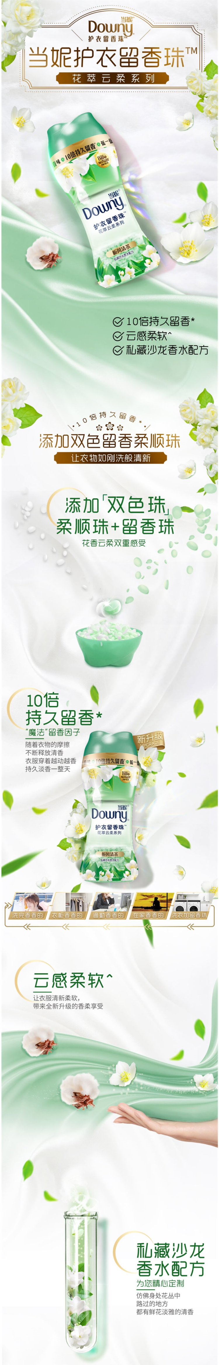 这款当妮 Downy 护衣柔顺留香珠,是柔顺+留香的功能组合,10倍持久留香,随着衣服的摩擦,能不断释放清香,同时柔顺衣物,摸着云感柔软。