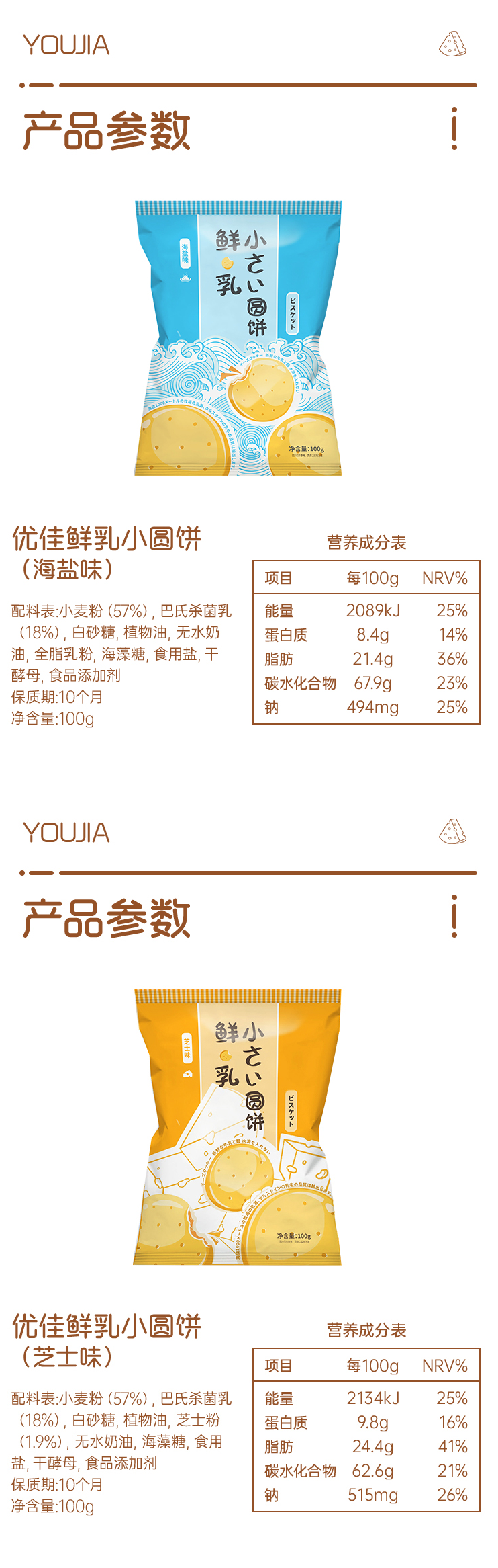 这款优佳日式鲜乳小圆饼干,使用北纬40°的黄金奶源的鲜奶和面,不加一滴水,烘焙制成,色泽金黄,伴随有浓郁奶香,口感酥脆。