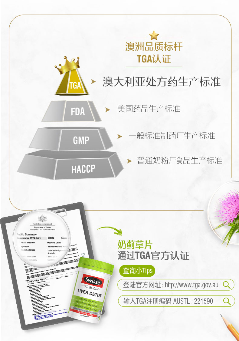 Swiss是近两年风头很盛的自然健康品牌,于1960年在澳大利亚墨尔本创建,号称澳洲顶级保健品,同时也是澳洲自然医学疗法的先驱之一,公司主旨是倡导缔造健康和高品质生活,有超过25年的科学研究和临床试验的基础,其原料采购和生产工艺均通过全球最高处方药的生产标准TGA。