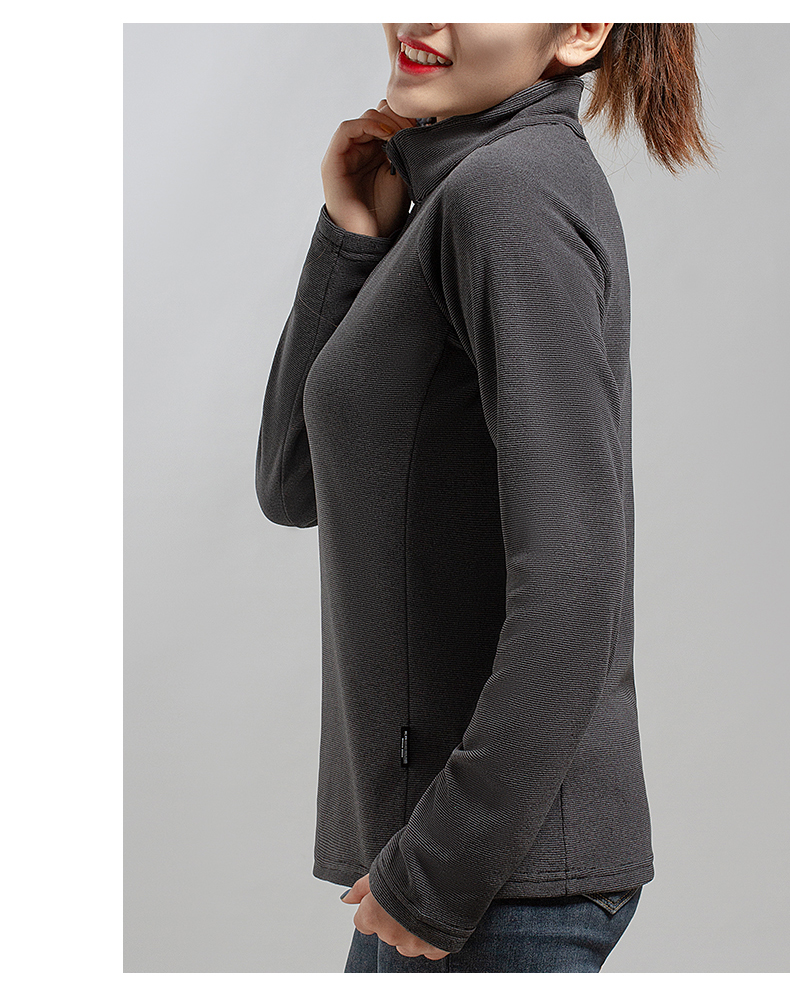 在款式和细节上,男女均修身版型,半开禁拉链立领设计,拉链顶端有护颚设计,不会刮伤脖颈。外层是纹理质感面料,避免了抓绒起球的问题。袖口和下摆采用双车线工艺,不易开线,无论是直接单穿或者作为中间保暖层都没问题。