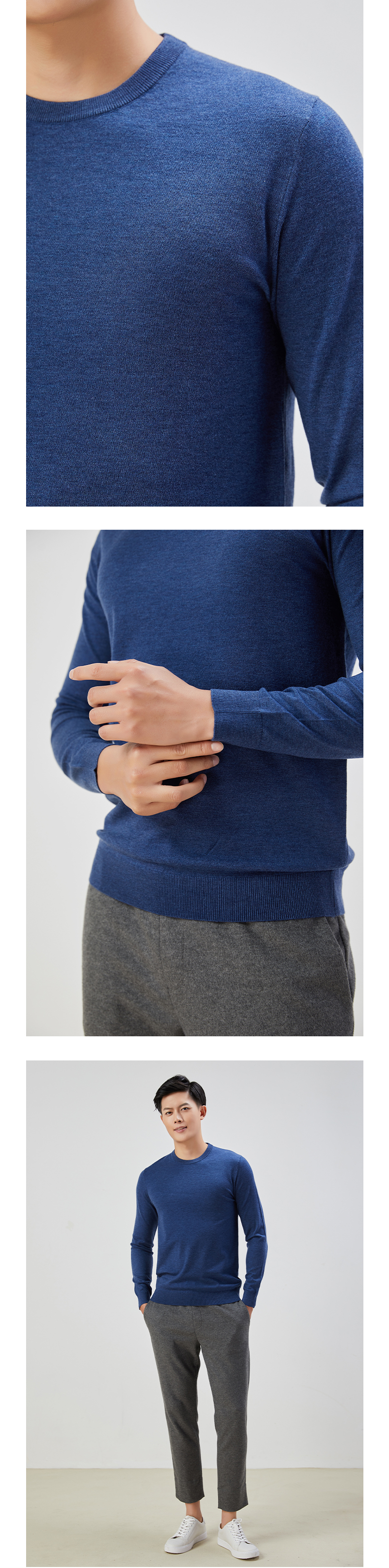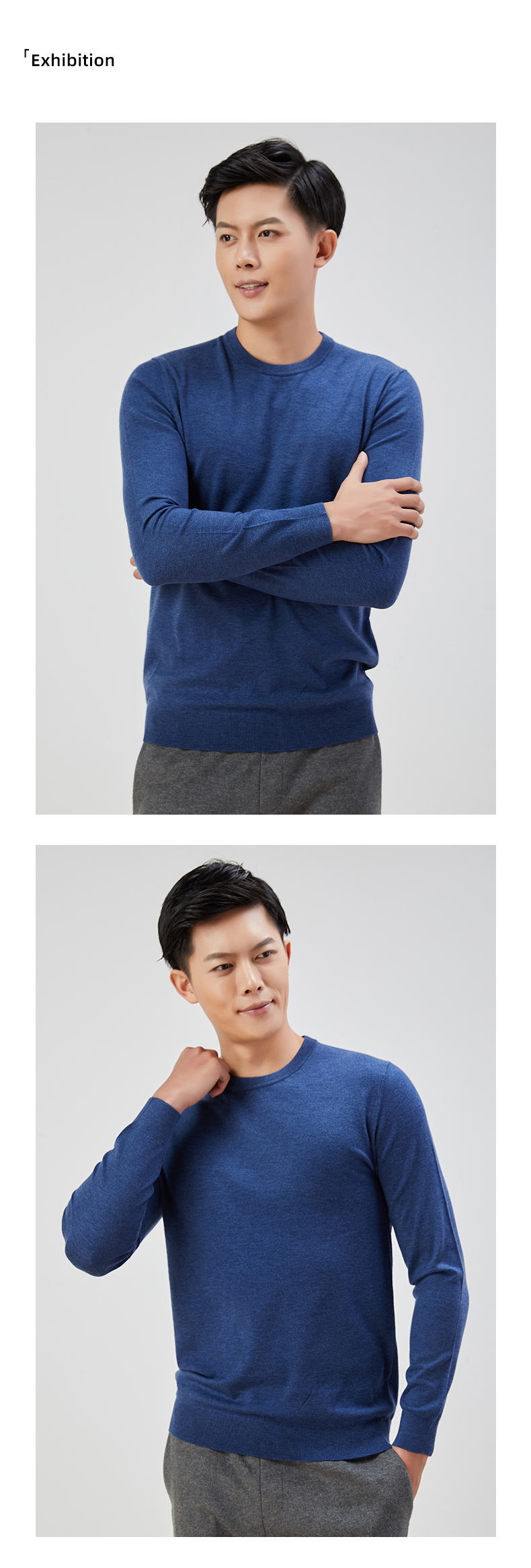 圆领款: 针织衫采用四种纤维混纺(腈纶38.5%、聚酯纤维37.8%、锦纶19.5% 羊毛4.2%),保暖舒适,亲肤顺滑,不易起球,基础圆领百搭款式,内外两穿满足不同风格。