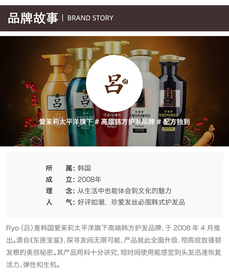 天猫国际进口超市59元,可领10元优惠券,2件5折,拍2件实付49元到手,单件规格为400ml,有洗发水和护发素可选。吕是韩国爱茉莉集团的中高端洗护品牌,所有洗护系列均以汉 方为基础,具有去屑、防脱发功效,是韩国7年销量第一的洗发水。