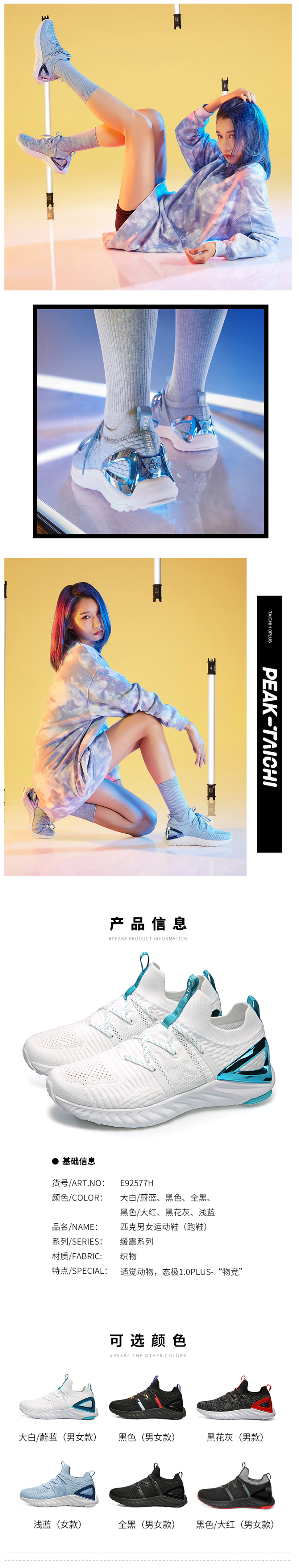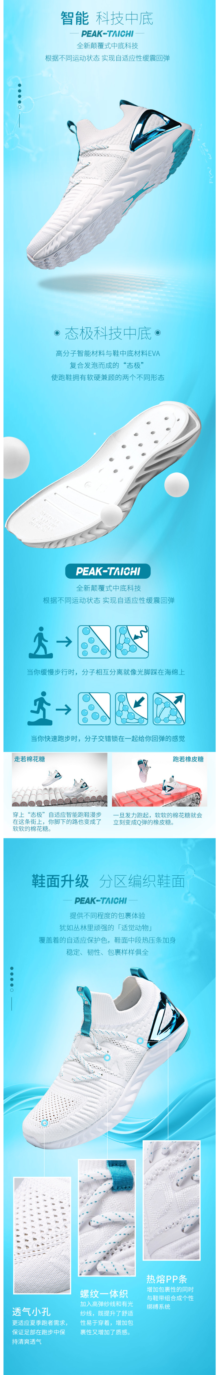 全新的鞋面升级,采用分区编制鞋面,中段热压条加固稳定、韧性、与包裹性。不仅是颜值上的提升,整体也增加了立体感,让鞋子更加潮流国际化。其中透气小孔、螺纹一体织、热熔PP条等细节都是根据消费者反馈改良的。