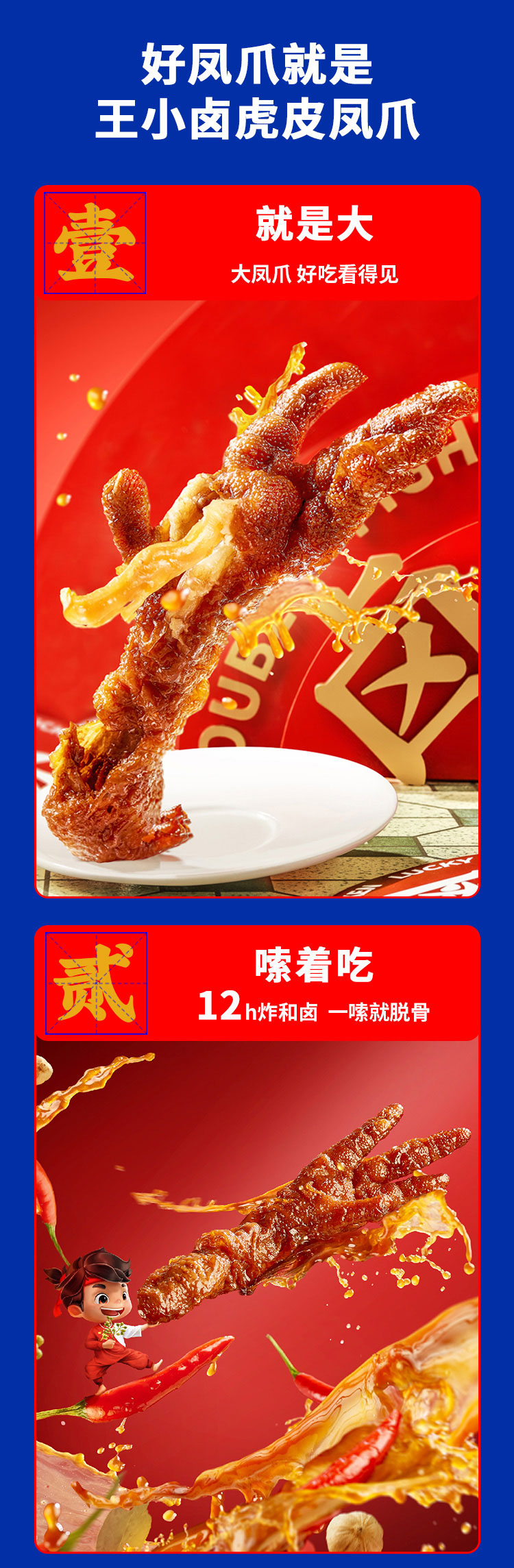 天猫王小卤旗舰店29.8元,可领20元优惠券,拍2件实付39.6元到手。荣获2020年iTQi世界美味大奖,虎皮凤爪就吃王小卤,一秒脱骨,皮酥肉嫩,先炸后卤更好吃,肉质Q弹,40克左右的超大鸡爪,单支鸡爪精致包装,安全又卫生。