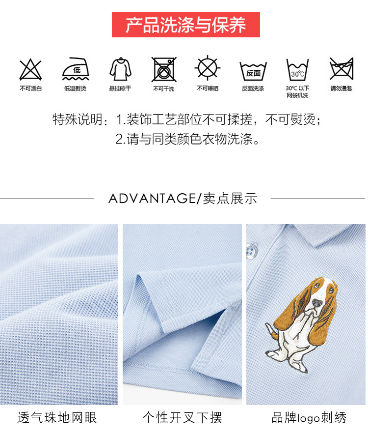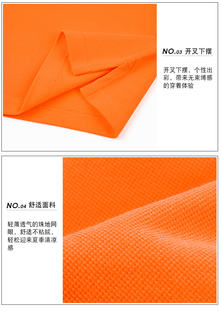 100%全棉舒适面料,珠地网眼结构,珠地织法使布表面呈疏孔状,有如蜂巢,比普通针织布更透气、透湿、夏季穿着可长时间保持身体干爽,穿着更舒适,而且面料不易起球,洗涤后不变形,结实耐穿好打理。