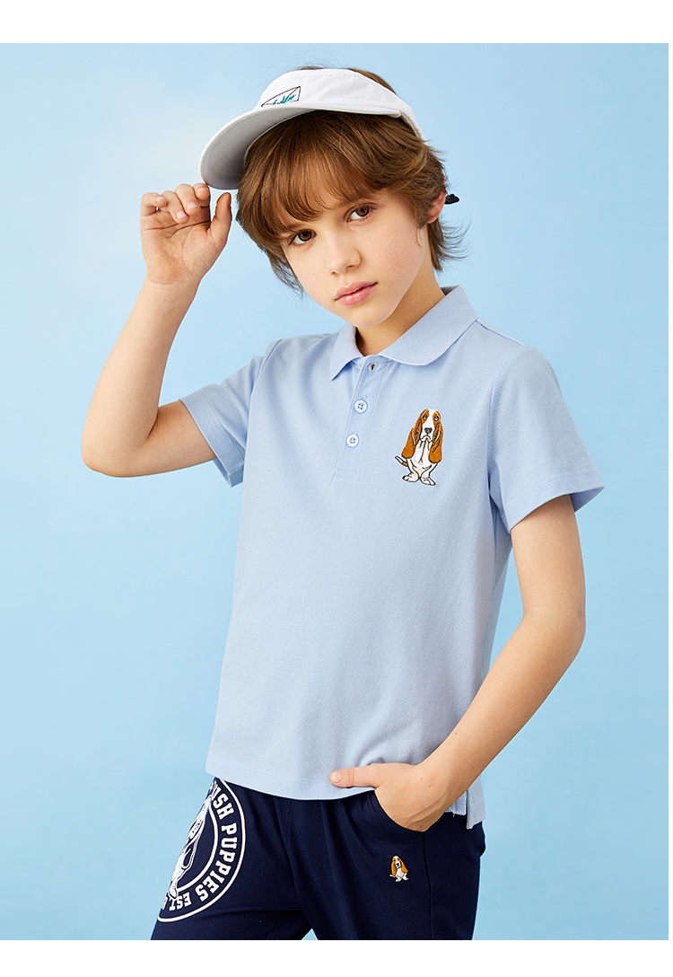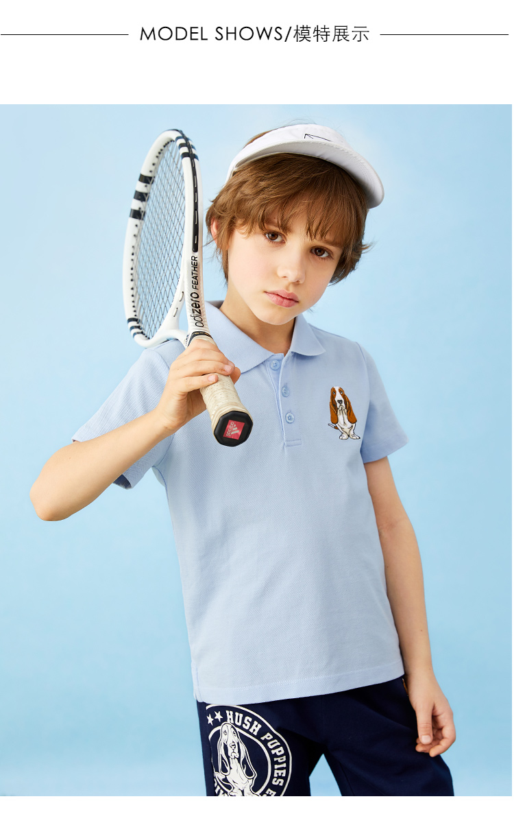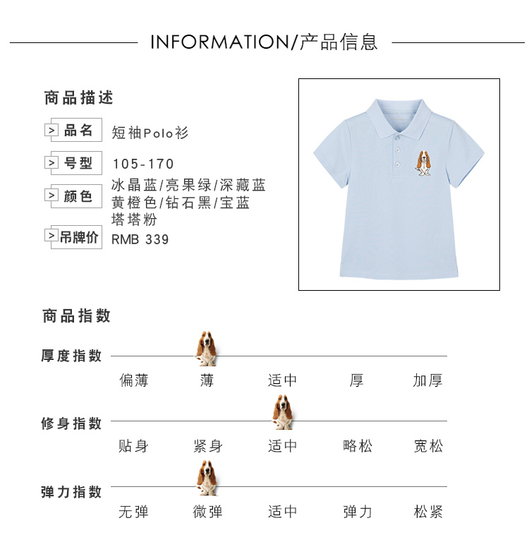 合体版型,底部下摆开叉设计,活动更自如,彩色撞色螺纹翻领,挺括有型,半开身纽扣设计,自由调节高度,穿脱方便。胸前经典的猎犬logo刺绣,醒目吸睛,彰显品质感。