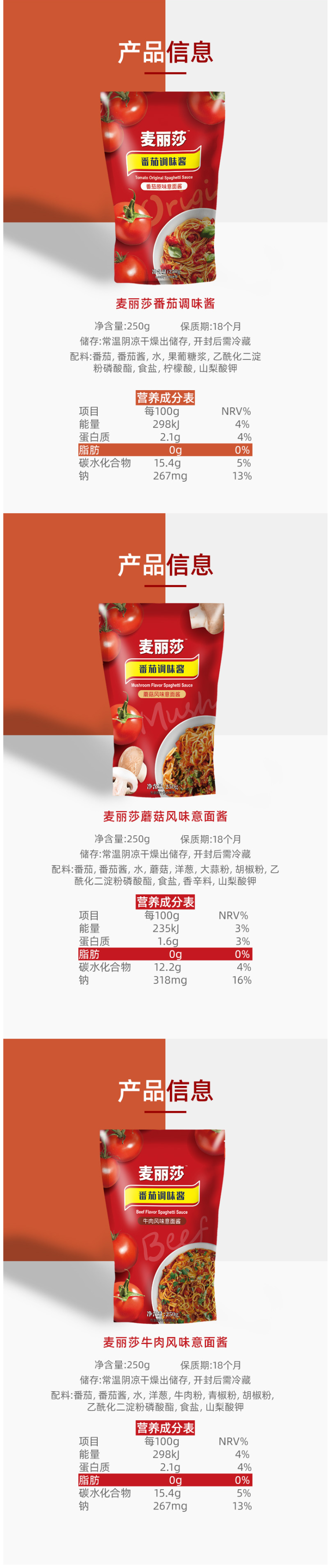 这款麦丽莎意大利面酱零脂肪含量,适合减肥健身爱好者,使用新鲜优质原料制成,不添加人工防腐剂、色素、淀粉、增稠剂,无油工艺,最后巴氏杀菌罐装,健康又安全。